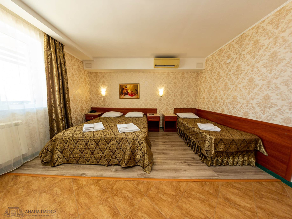 3-местный стандарт: 1-комнатный номер, мебель, телевизор, кондиционер, холодильник, санузел, сейф, 20 кв.м.