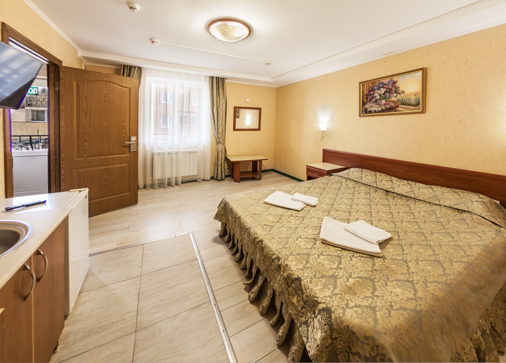 В отеле представлены несколько категорий номеров, что позволит выбрать наиболее подходящую форму размещения: студия с кухонной зоной, 2-местный стандарт, 3-местный стандарт. Все номера оснащены необходимым для комфортного пребывания: 1- и 2-спальные кровати, санузел с душем, ТВ, сплит-система, холодильник, сейф и т.д.