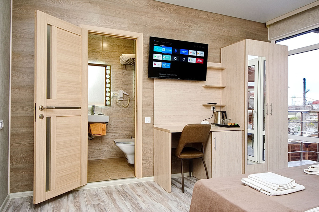 3-местный полулюкс: 1-комнатный номер, мебель, телевизор, кондиционер, холодильник, санузел, фен, 18 м.кв.