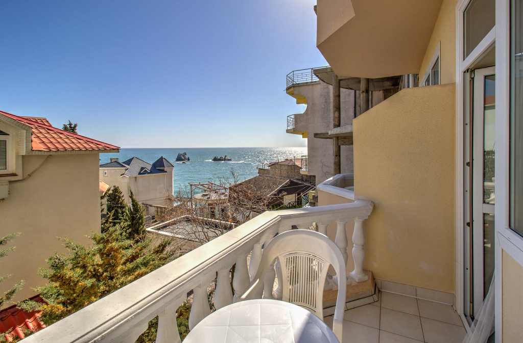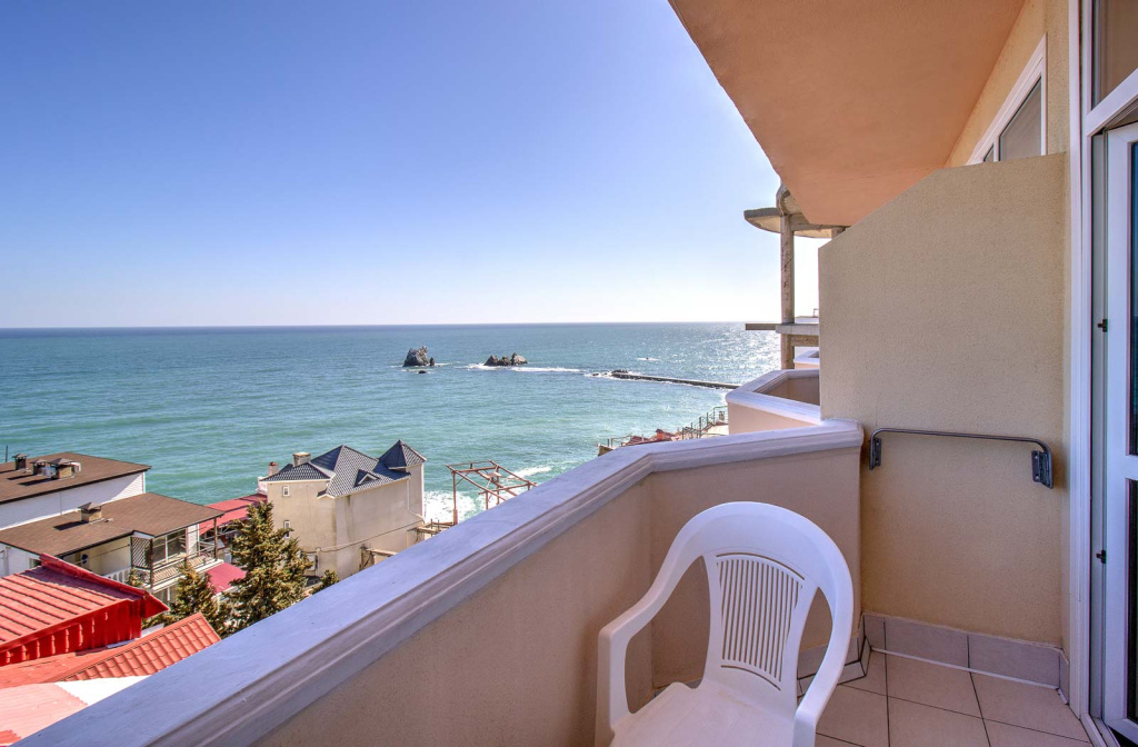 Отель состоит из 2-х корпусов, соединенных между собой внутренним зеленым двориком с беседками для отдыха. Гостей отеля ждут комфортабельные номера, оборудованные всем необходимым для полноценного отдыха, с балконами и сказочными видами на черноморское побережье. За уют и элегантность в отеле отвечает кафе и уличная терраса, которая покорит потрясающим выбором блюд из сезонных продуктов. К услугам гостей предоставляется открытый бассейн на крыше с панорамным видом на Черное море. Собственная зона отдыха возле бассейна с шезлонгами и настольным теннисом – это отличное решение приятно провести время на свежем воздухе, не выходя из отеля. Всего в минуте ходьбы от отеля находится пляж - это площадка со спуском в море по лестнице. Для гостей отеля лежаки, пляжные зонтики и пляжные полотенца предоставляются бесплатно. Для любителей погреться на камушках в двух минутах ходьбы от отеля находятся Набережная с прекрасно оборудованными галечными пляжами со множественными предложениями для прекрасного времяпрепровождения: прогулки на яхтах и катерах, рыбалка в открытом море, прокат катамаранов, каякинг вокруг местных скал, водные лыжи и многое другое. На набережной расположены продуктовые магазины, кафе, сувенирные лавки, экскурсионные бюро, которые помогут сделать отдых максимально комфортным и практичным, а в вечернее время здесь всегда кипит жизнь – работают дискотеки, открытые танцплощадки и караоке.