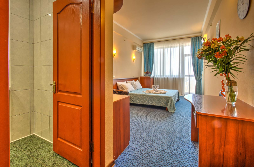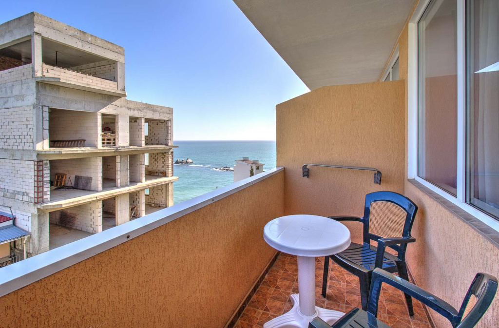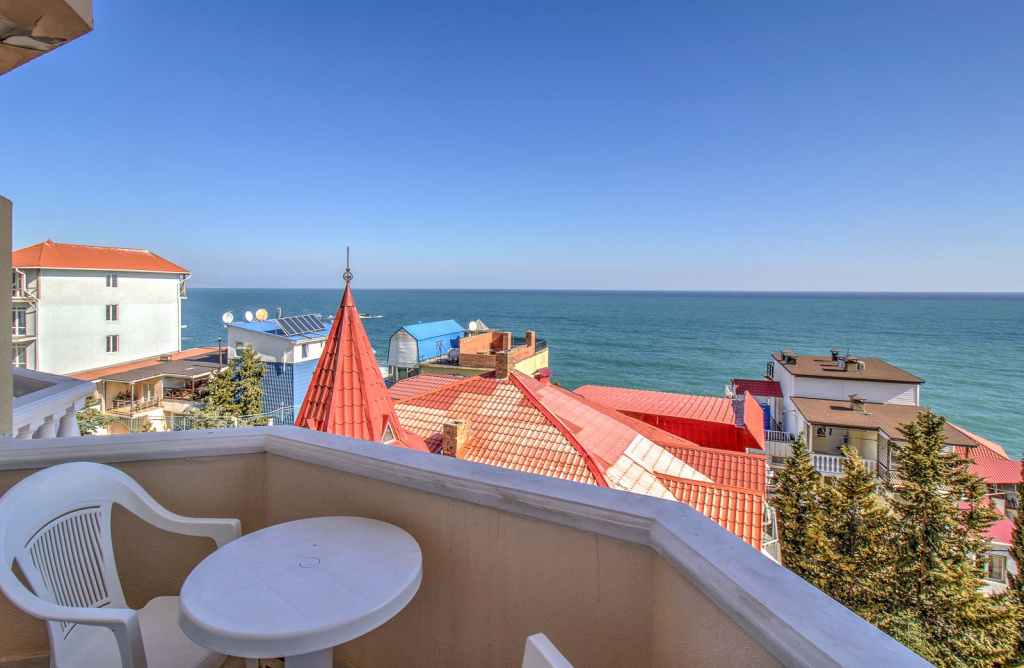 Отель состоит из 2-х корпусов, соединенных между собой внутренним зеленым двориком с беседками для отдыха. Гостей отеля ждут комфортабельные номера, оборудованные всем необходимым для полноценного отдыха, с балконами и сказочными видами на черноморское побережье. За уют и элегантность в отеле отвечает кафе и уличная терраса, которая покорит потрясающим выбором блюд из сезонных продуктов. К услугам гостей предоставляется открытый бассейн на крыше с панорамным видом на Черное море. Собственная зона отдыха возле бассейна с шезлонгами и настольным теннисом – это отличное решение приятно провести время на свежем воздухе, не выходя из отеля. Всего в минуте ходьбы от отеля находится пляж - это площадка со спуском в море по лестнице. Для гостей отеля лежаки, пляжные зонтики и пляжные полотенца предоставляются бесплатно. Для любителей погреться на камушках в двух минутах ходьбы от отеля находятся Набережная с прекрасно оборудованными галечными пляжами со множественными предложениями для прекрасного времяпрепровождения: прогулки на яхтах и катерах, рыбалка в открытом море, прокат катамаранов, каякинг вокруг местных скал, водные лыжи и многое другое. На набережной расположены продуктовые магазины, кафе, сувенирные лавки, экскурсионные бюро, которые помогут сделать отдых максимально комфортным и практичным, а в вечернее время здесь всегда кипит жизнь – работают дискотеки, открытые танцплощадки и караоке.